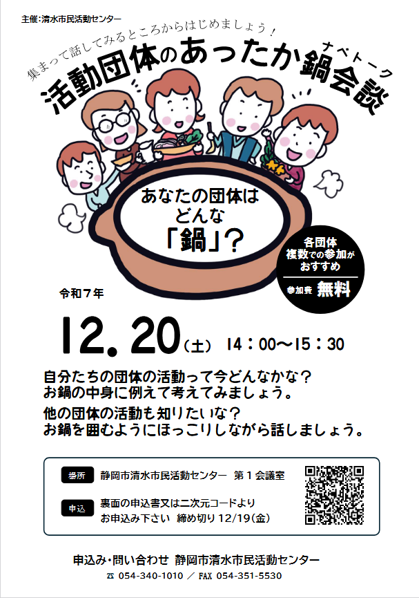 自団体の活動を振り返りながら他団体を知る、お鍋を囲むようにほっこりしながら話しましょう。
